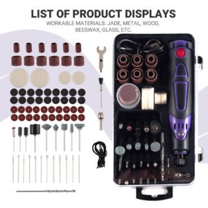 - 1.Electric Engraving Pen Kit with 82 Accessories: Includes 82 accessories . These tips are perfect for engraving, cutting, sanding, polishing, etching, routing, grinding, drilling, and more. The lightweight and compact design of this engraver pen makes it easy to tackle complex tasks and achieve intricate details effortlessly.