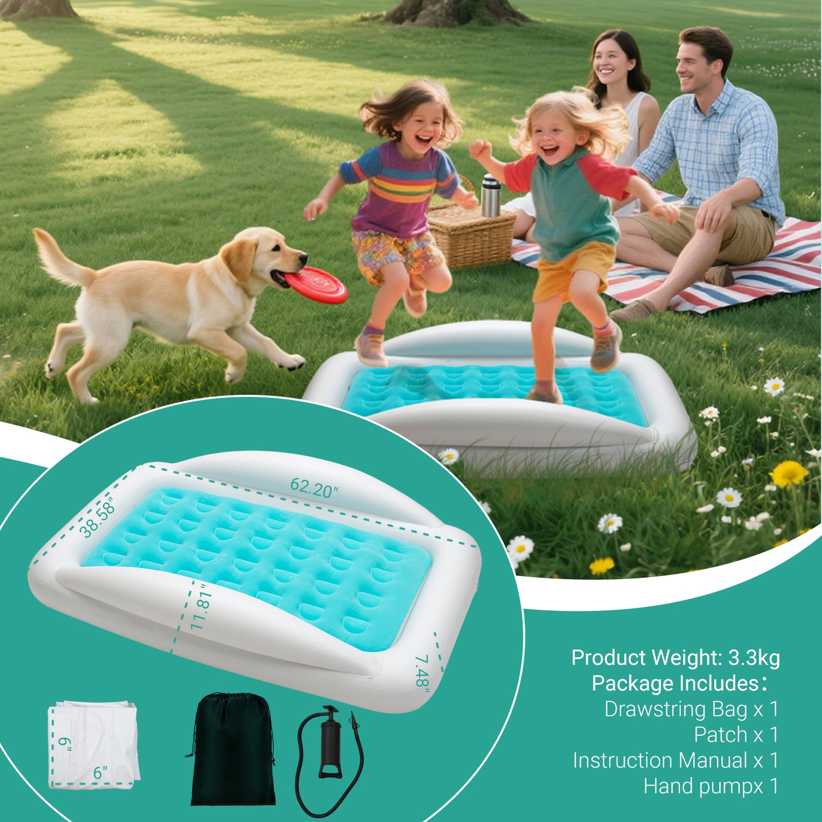 Fly Inflatable Toddler Travel Bed with Sides Portable Blow-Up Kids Air Mattress for Baby Child Compact Foldable Crib Alternative Built-in Pump